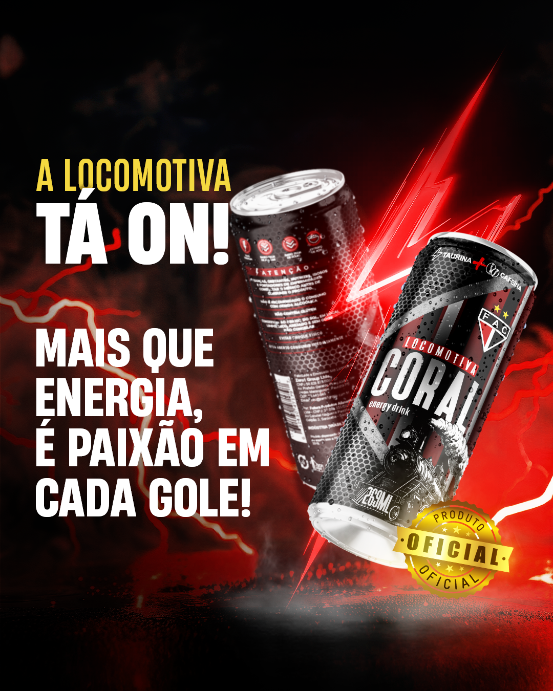 É um energético de sabor diferenciado, equilíbrio técnico e forte presença visual, que reforça o orgulho de ser Ferroviário.”