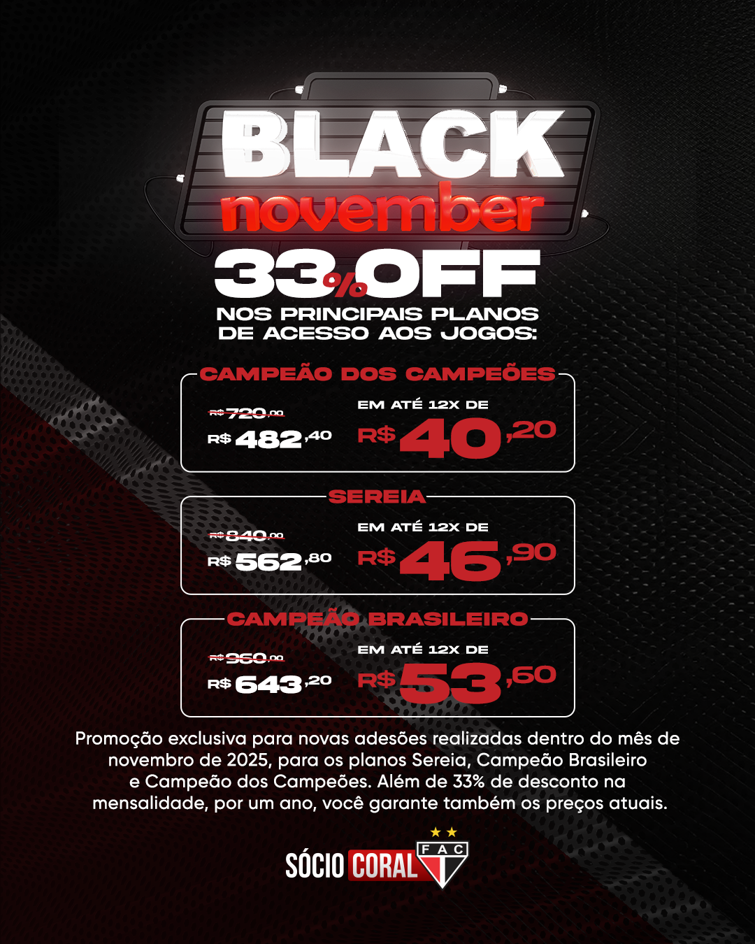 💥 Promoção válida apenas para novas adesões realizadas durante o mês de novembro de 2025.