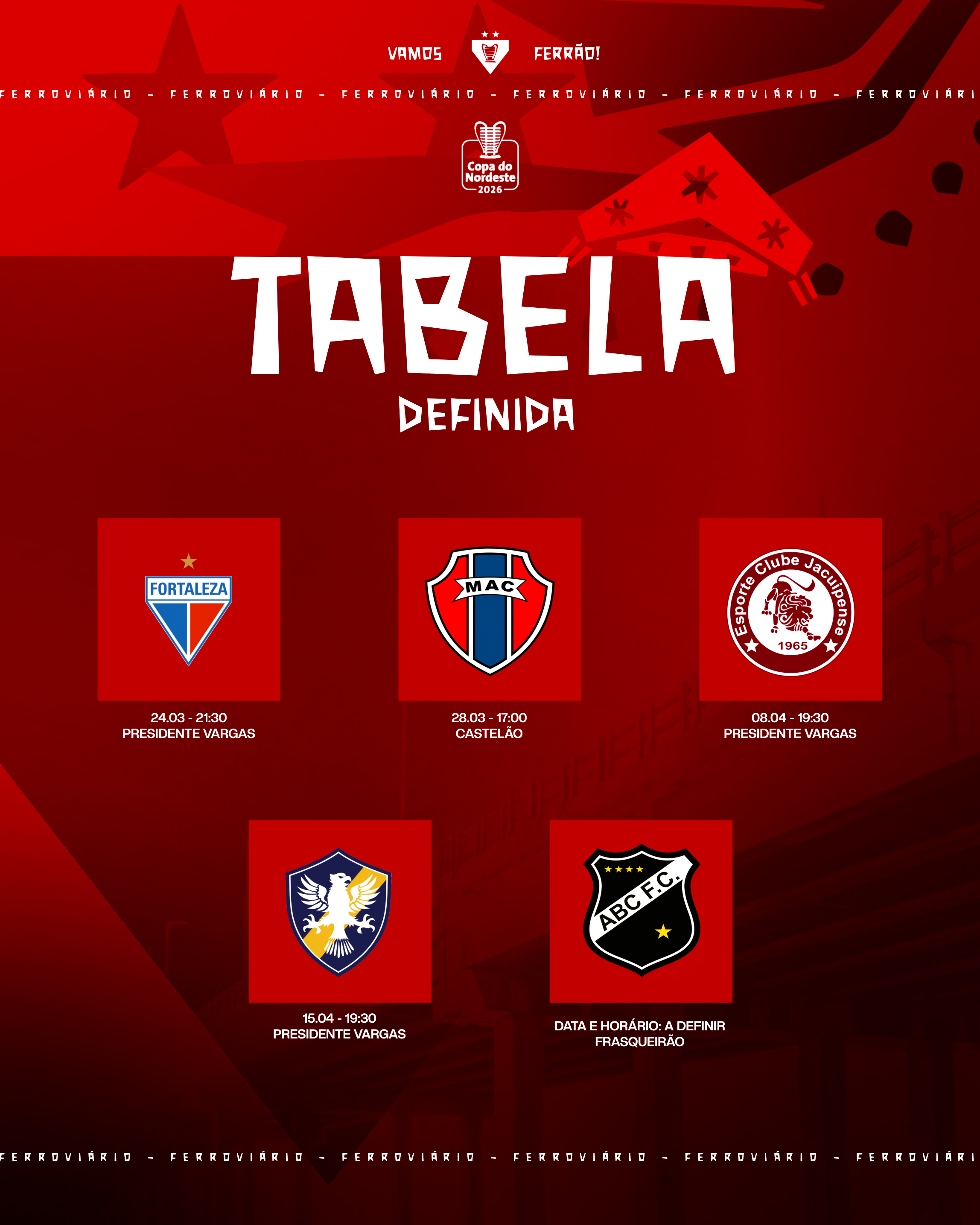 A tabela da Copa do Nordeste 2026 está definida, e o Ferroviário Atlético Clube já conhece seus adversários na competição.